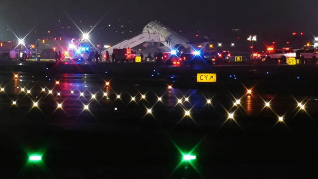 New York: A runway incident at LaGuardia Airport on Monday resulted in injuries to at least four individuals, including two officers from the Port Authority Police Department (PAPD), after an aircraft collided with a ground vehicle.